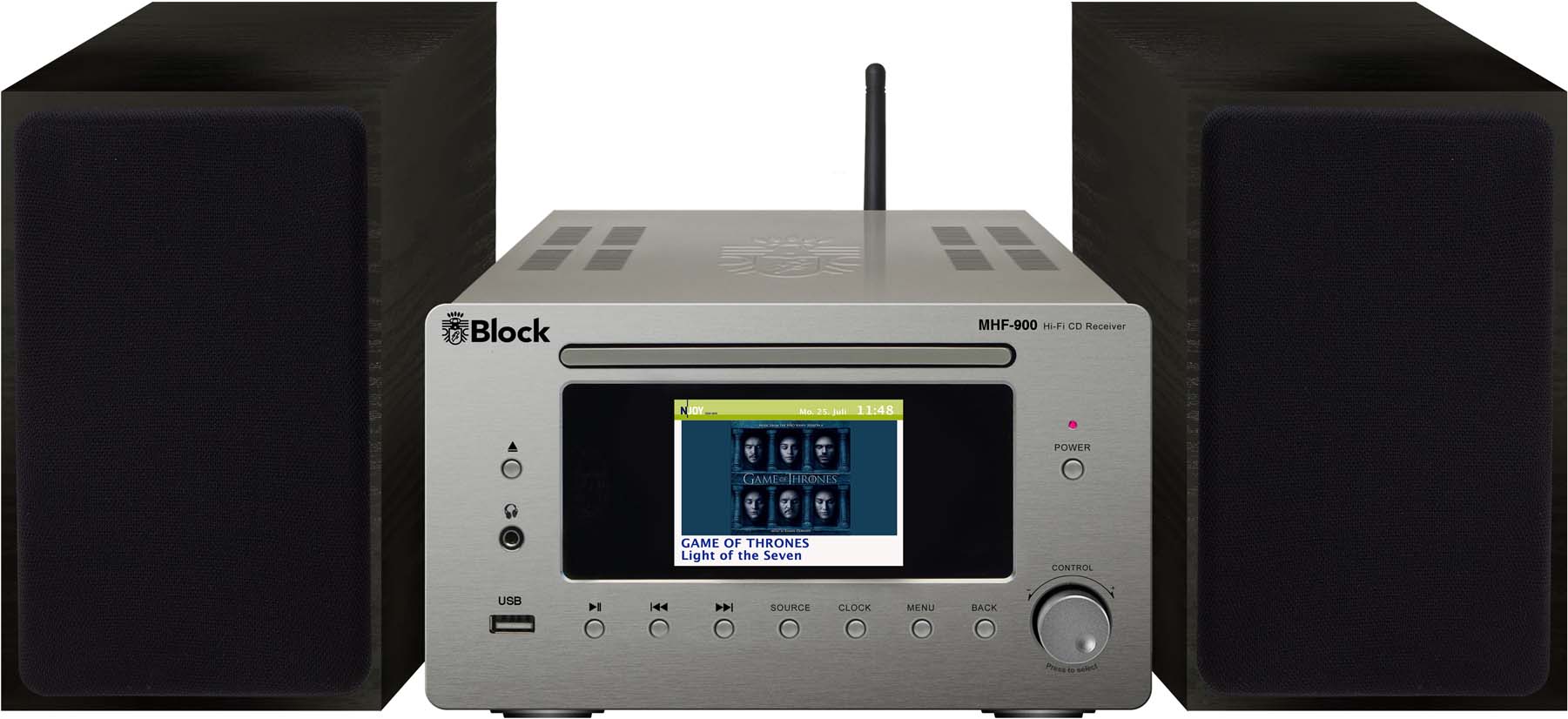 Kompaktanlage, Medien- und Bluetoothplayer, Triple Tuner, Leistung 2x 40 Watt (4 Ohm), Musikclient für PC und UPnP Medien, Lautstärkeregelung über Multifunktionsdrehregler, über die Fernsteuerung oder die APP "UNDOK " regelbar, Netzwerk LAN (Ethernet), WLAN 2,4 GHz oder 5 GHz, CD-Spieler Kompatibilität HDCD, CD-R, CD-RW und MP3, Dateiformat AAC, AAC+, MP3, WAV, WMA, FLAC, Streaming Bluetooth, DLNA, Schlummerfunktion, Weckfunktion, Eingänge: 2x Stereo Cinch, 3,5 mm Line-In, USB (digital), analoge Ausgänge: Pre-Out, Rec-Out und 3,5 mm Kopfhörer, Frequenzbereich UKW 87,5 - 108 MHz, Frequenzbereich DAB+ 174.928 MHz - 239.200 MHz, Fremdspannungsabstand > 80 dB, Kanaltrennung 75 dB, Klirrfaktor 0,05 %, 2-Wege-Bassreflexsytem, Ausstattung: 320x240 TFT Farbdisplay, Metallgehäuse, Systemfernbedienung, Fernbedienungslernfunktion, Logo-Prägung im Top-Plate, Senderspeicher: je 10 für UKW, DAB+ und Internetradio, zwei hochwertige Mikroboxen in schwarzem Strukturlack-Finish, Lautsprecherabmessung BxHxT: 145x220x185 mm, inkl. Wurfantenne, WLAN Antenne und Bluetooth Antenne