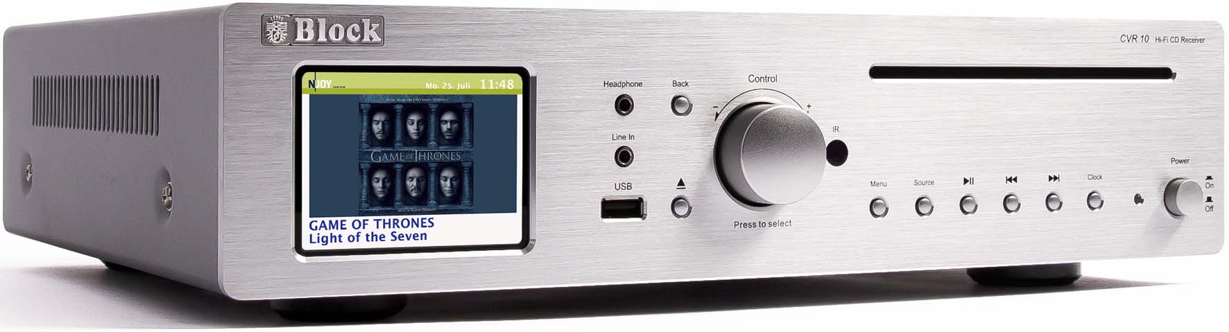 CD-Internet-Receiver, Multiroom Basisgerät, Leistung 2x 30 Watt (4 Ohm) 2x 25 Watt (8 Ohm), Farbdisplay, Analoge Eingänge 1x AUX 250 mV, 1x TV, 1x Line-In (Front), Digitale Eingänge 1x USB, 1x Coaxial, 1x Optisch (SP/DIF), Analoge Ausgänge 3,5 mm Kopfhörer(Front), Pre Out, Rec Out, Klirfaktor < 0,01 % (@ 1 Watt), Fremdspannungsabstand > 83 dB, Kanaltrennung > 60 dB, Frequenzgang 10 Hz - 30 KHz, Tonkontrolle Balance Hochton +/- 14 dB, Frequenzbereich UKW 87,5 MHz - 108 MHz, Frequenzbereich DAB+ 179.928 MHz - 239.200 MHz, Internetradio, Senderspeicher je 10 für UKW, DAB+, Internetradio, Dateiformat AAC, AAC+, MP3, WAV, WMA, FLAC, Streaming DLNA, UPnP App bedienbar, Netzwerk LAN (Ethernet) und WLAN 2,4 & 5 GHz, Bluetooth, CD-Kompatibilität HDCD, CD-R, CD-RW, MP3, Leistungsaufnahme "Aus" < 0,01 Watt, Leistungsaufnahme "Standby" 0,3 Watt, Leistungsaufnahme "Betrieb" 90 Watt (max.), Netzteil mit Netzschalter AC 230 V - 50 Hz
