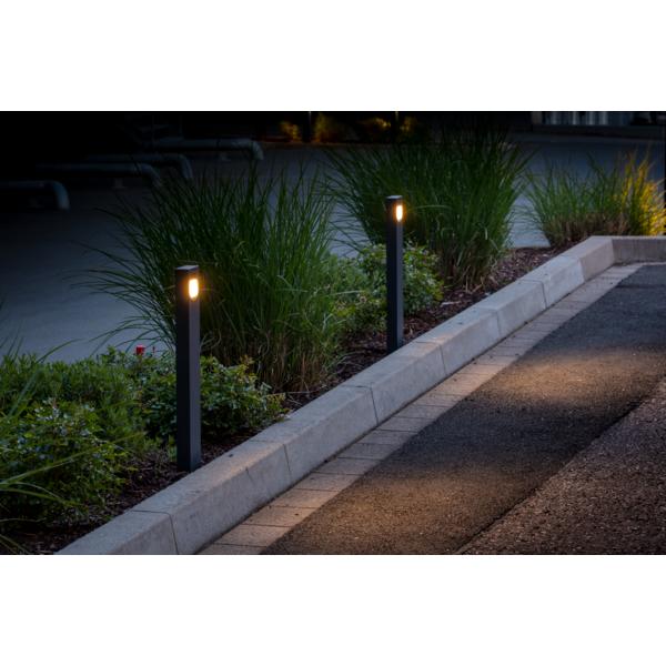 LED-Pollerleuchte, IP54, Höhe 600 mm, schaltbar, strukturgraphit, rechteckig. Ausführung in kompakter Bauform für die harmonische Implementierung in stimmige, architektonische Raumkonzepte. Sockelmaß: L 100 x B 150 mm Ausführung: ohne Fassung, Montageart: Anbaumontage, Montageort: Bodenmontage, Material: Aluminium / Glas, Schutzart raumseitig: nach DIN EN 60529: IP54, Schutzklasse: (EN 61140) I, Spannung: 230V AC 50Hz, Leistung: 11 W, Anzahl der Leuchtmittel / Fassungen: 1 Stück, Lichtstrom: 730 lm, Farbtemperatur: 3.000 K, Abstrahlwinkel: 65°, Mit Betriebsgerät: Ja, Art der Dimmung: schaltbar.