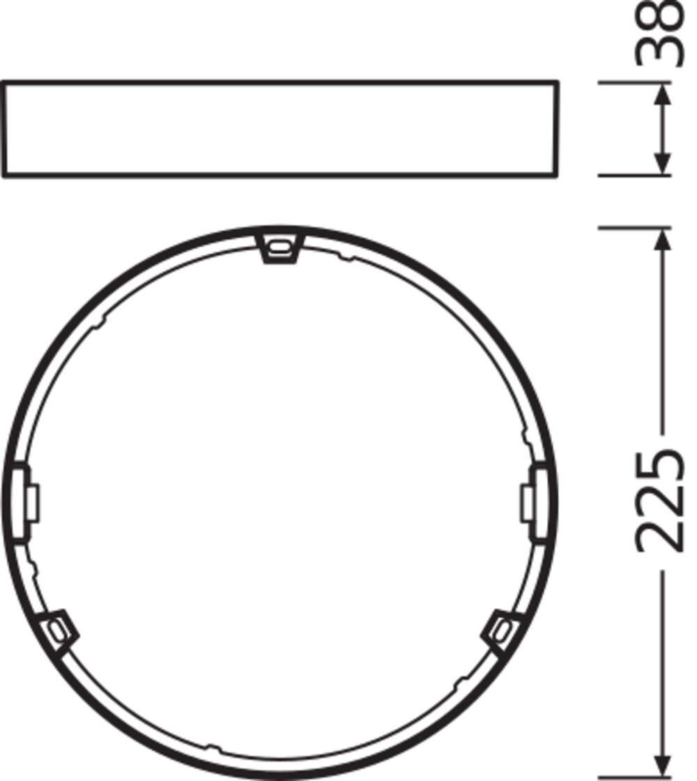 Aufbaurahmen, rund. Produkteigenschaften: Geringe Montagetiefe. Robustes Gehäuse aus Polycarbonat. Montagezubehör enthalten. Produktvorteile: Seitlicher Kabeleinlass für elektrischen Anschluss bei flachem Profil. Einfache Monage dank mitgelieferter Bohrschablone. Anwendungsgebiete: Allgemeinbeleuchtung. Öffentlicher Raum. Treppenhäuser. Flure. Eingangsbereiche. Geschäfte. Sicherheitshinweise: Alle elektrischen Anschlüsse dürfen nur von qualifiziertem Fachpersonal ausgeführt werden.. Produkt der Schutzklasse I. Alle elektrisch leitfähigen, metallischen Gehäuseteile, die im Betrieb oder während der Wartung im Fehlerfall Spannung aufnehmen können, müssen durchgängig mit dem Schutzleiter verbunden sein..