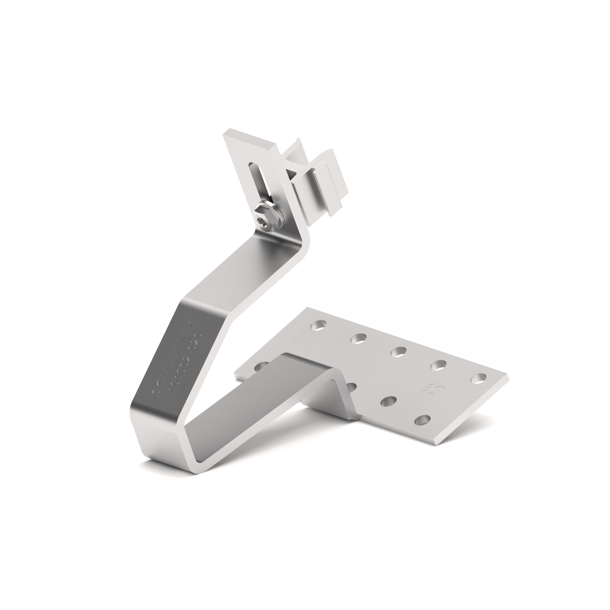 VA-Qualität, Geschweißt, Steganordnung symmetrisch, vormontiert, 35 mm / 1,38 inches Schenkelhöhe für niedrige Lattung. Durch einen drehbaren Multiadapter kann der Dachhaken mit den Profilen der Serie ProLine sowie mit dem klassischen Schletter Baukastensystem kombiniert werden.