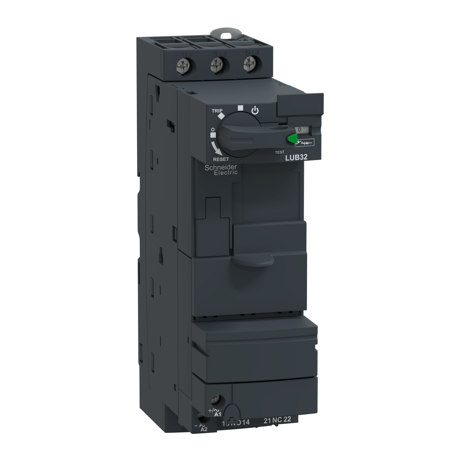 Grundgeräte TeSys U. Grundgerät, TeSys U, 32A, ohne Klemmen. Bemessungsleistung 0,1-15 kW, Drehrichtungen 1, MTZ 13, Steuerspannung . Universelle Grundgeräte mit vorverdrahteter Schalt- und Schutzkombination, serienmäßig bis 12 / 32 A und mit 2 Hilfskontakten (1 S + 1 Ö). Baubreite bis 15 kW nur 45 mm (Direkt- und Wendestarter), vollständige Koordination nach IEC 947-6-2 (verschweißfrei). TeSys U ist ein kompletter Motorabgang, der die Funktionen von Motorschutzschalter und Schütz beinhaltet. Mit lediglich zwei Grundgeräten deckt man den Leistungsbereich von 0,1-15 kW ab. Der Clou Die Steuerspannung und der Strombereich müssen erst in letzter Sekunde durch eine steckbare Steuereinheit bestimmt werden.