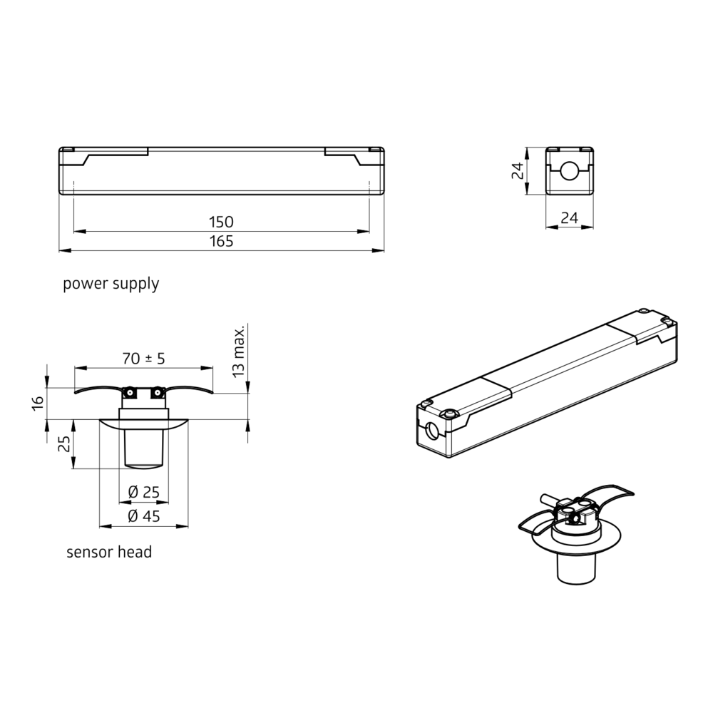 Mini-Präsenzmelder speziell für große Höhen, Ein Kanal zum Schalten von Licht, Ausführung als Master-Gerät, Erweiterung des Erfassungsbereiches mit Slave-Geräten möglich, Manuelles Schalten über Taster möglich, Leistungsteil passt durch die Bohrung für den Melder in der Decke (bei 34 mm d. ), Einfache Bedienung mittels erforderlicher Fernbedienung, Federklemmen für den einfachen und schnellen Einbau in abgehängte Decken und in Leuchten, Inklusive d. 45 mm Abdeckring und Abdecklamelle, Werkseinstellung 10 min und 500 Lux