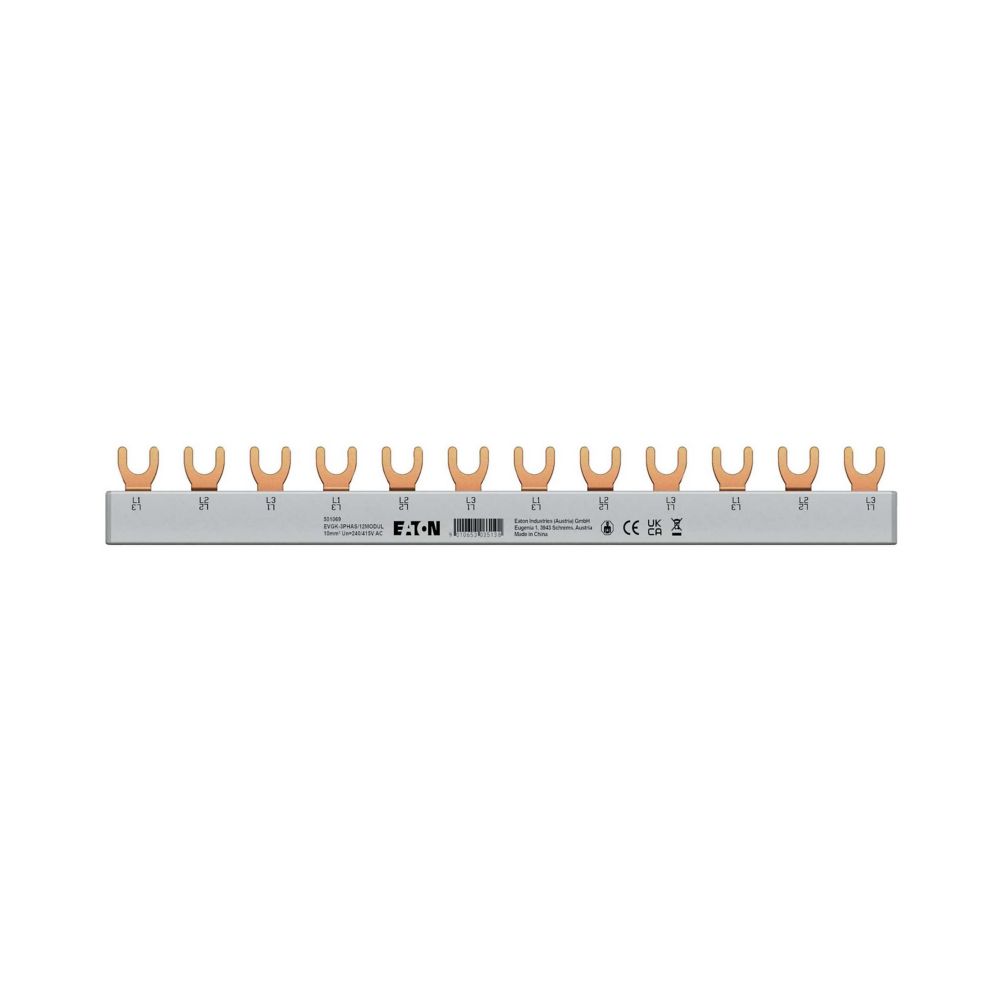 Sammelschiene für Leitungsschutzschalter, Fehlerstrom-Schutzschalter, kombinierte Fehlerstromschutzeinrichtungen, vormontierte Endkappen (auch separat erhältlich), individuell ablängbar, Farbe RAL 7035, halogenfrei (DIN EN 60754-1), Brandverhaltensklasse nach V2, geprüft durch VDE (DIN EN 61439-1:2021-10, DIN EN 61439-6:2013-06), PC-ABS Isoliermaterial und PP Berührungsschutzmaterial, Durchschlagsfestigkeit 36 kV/mm und Überspannungskategorie III