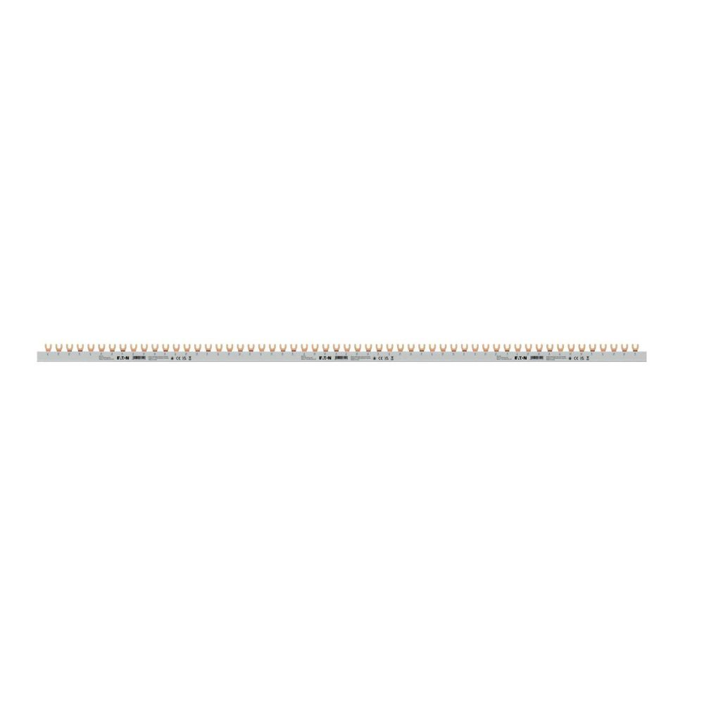 Sammelschiene für Leitungsschutzschalter, Fehlerstrom-Schutzschalter, kombinierte Fehlerstromschutzeinrichtungen, individuell ablängbar, Farbe RAL 7035, halogenfrei (DIN EN 60754-1), Brandverhaltensklasse nach V2, geprüft durch VDE (DIN EN 61439-1:2021-10, DIN EN 61439-6:2013-06) PC-ABS Isoliermaterial und PP Berührungsschutzmaterial, Durchschlagsfestigkeit 36 kV/mm und Überspannungskategorie III