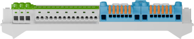 Kleinverteiler, mit Schutzart IP65, 2-reihig, 24 verfügbare Teilungseinheiten, Bemessungsbetriebsspannung: 400V AC, Bemessungsisolationsspannung: 1000V AC, 1500V DC, oben selbstdichtende, weiche Einführungsmembranen zur werkzeuglosen Leitungseinführung, unten metrische Vorprägungen für universelle Leitungseinführungen mit Kabelverschraubungen und / oder Doppelmembranstutzen, für die Standardinstallation im Innenbereich, grau, PE/N-Klemme, bestehend aus: PE-Klemmschiene mit 3 Schraubklemmen 2,5-16mm² und 14 Push-in-Klemmen 0,75-4mm², 2 N-Module (mit Steckbrücke verbunden) mit jeweils 2 Schraubklemmen 2,5-16mm² und 6 Push-in-Klemmen 0,75-4mm² mit Betätigungshebel zum werkzeuglosen Lösen der LeiterAbmessungen: 290 x 407 x 124mmBeigefügtes Zubehör: Verschlussstopfen, Abdeck- und Beschriftungsstreifen
