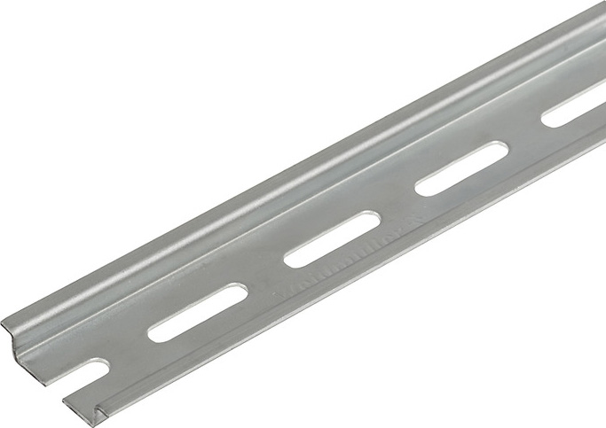 Profilschiene aus Metall für die Aufnahme elektrischer Betriebsmittel. Die Tragschiene wird in ein Gehäuse, einen Anschlusskasten, einen Schaltschrank oder eine ähnliche Vorrichtung montiert.
