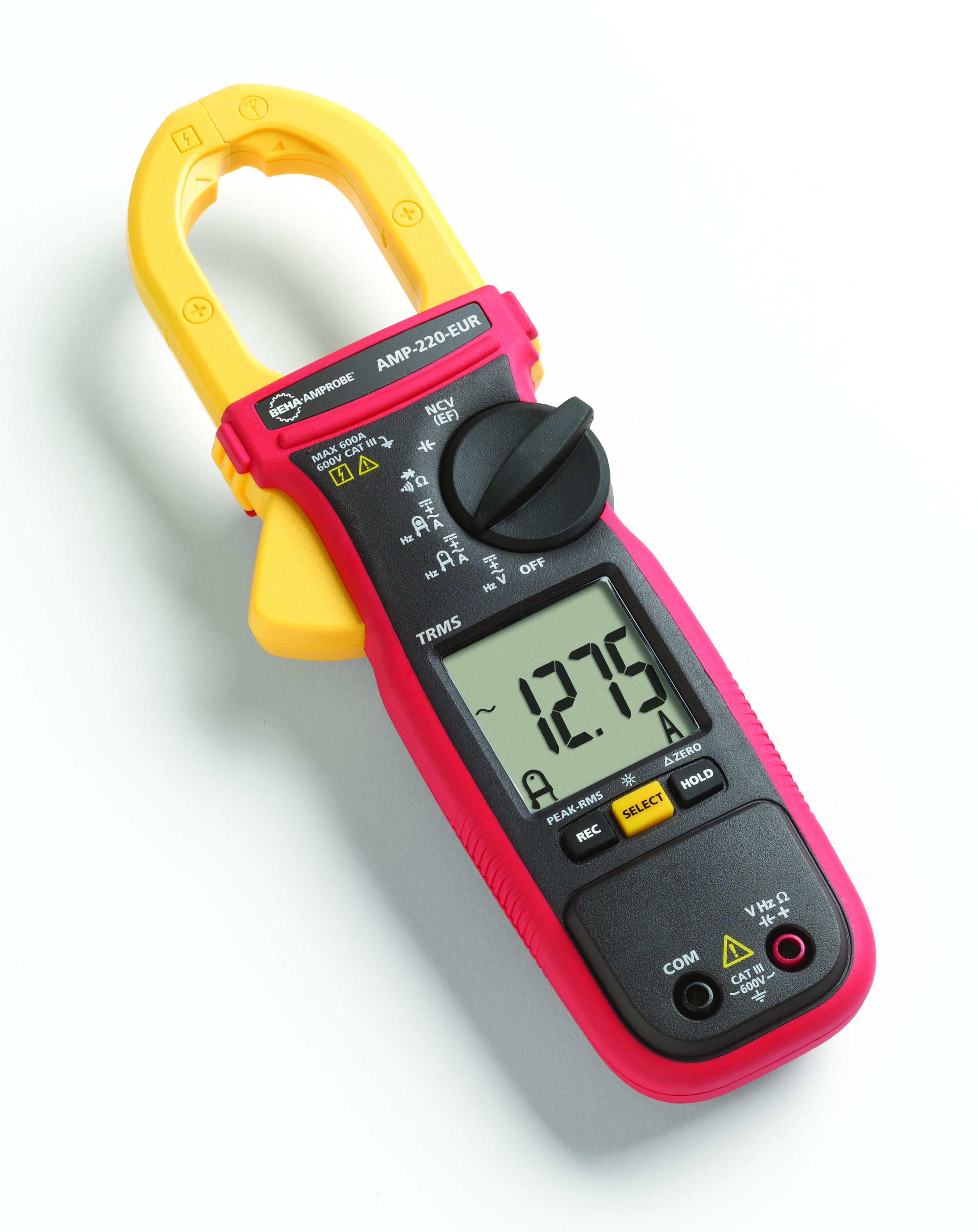 Die Strommesszangen AMP-210-EUR und AMP-220-EUR von Beha-Amprobe mit Echteffektivmessung bis 600 A bieten eine Vielzahl von Messfunktionen für moderne elektrische Anlagen. Beide Modelle beinhalten Echteffektivwertmessung, Tiefpassfilter und Prozessoren mit kurzer Antwortzeit, um schnelle, fehlerfreie Messungen zu gewährleisten. Die Amp-Tip Funktion ermöglicht eine präzise Strommessung bis hinunter auf 0,1 A und dadurch eine genaue Strommessung sowohl an großen als auch kleinen Drahtdurchmessern.
