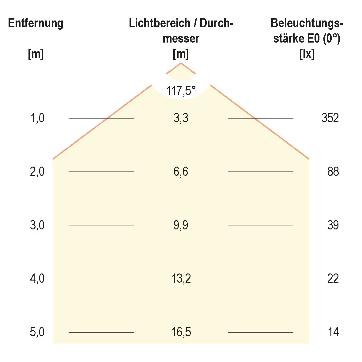 Lichtstromrückgang bei mittl. Nutzungsdauer 50.000 h bei 25 °C Umgebungstemp.