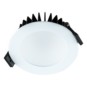 RGBW-LED Einbauleuchte für verschiedene Anwendungsbereiche, wie z. B. flächendeckende, aber auch effektvolle Beleuchtungen in Flur, Wohnzimmer, Büro, und vieles mehr. Die Steuerung der Leuchte erfolgt über einen externen RGBW-Controller, wodurch mehrere Leuchten synchron gesteuert werden können. Sowohl das Netzgerät, als auch die RGBW-Steuerung sind separat erhältlich. Da die Leuchte mit RGBW-LED-Chips ausgestattet ist, muss die Lichtfarbe Weiß nicht aus den RGB-Farben generiert werden. Durch unterschiedliche Betriebsmodi ergeben sich folgende maximale Lumenwerte: Betrieb in 3000K: 850lm, Betrieb in RGB: 471lm, wobei die Einzelfarben folgende Lumenwerte erreichen: Rot: 40lm, Grün: 410lm, Blau: 21lm.