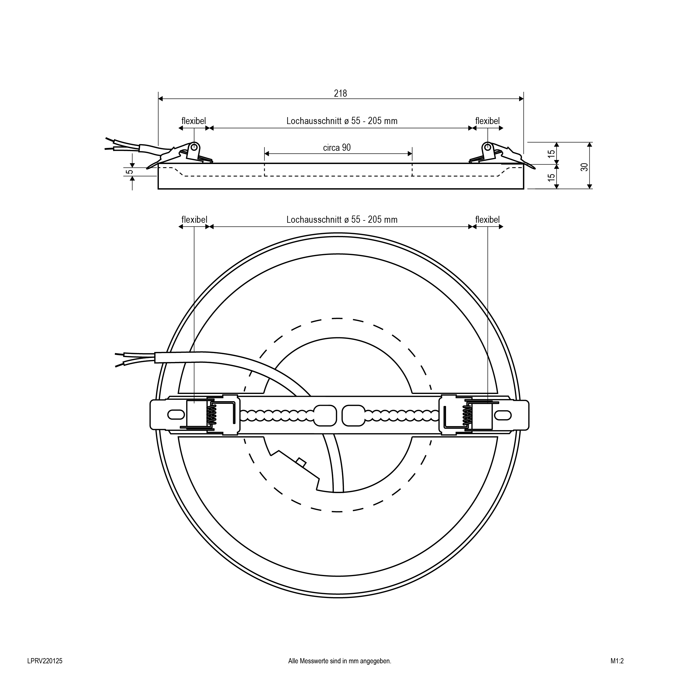 LED Ein- und Anbaupanel für verschiedene Anwendungsbereiche, wie z. B. flächendeckende, aber auch effektvolle Beleuchtungen in Flur, Wohnzimmer, Büro, und vieles mehr. Das Panel ist ausschließlich zur Verwendung im Innenbereich geeignet. Die Haltefedern können durch verschiedene Rasterpunkte auf der Halteschiene verstellt werden, wobei das Ausschnittmaß von 55mm bis 205mm eingestellt werden kann. Mit dem an der Rückseite angebrachten Schalter kann eine von drei möglichen Farbtemperaturen eingestellt werden. Die möglichen Farbtemperaturen und daraus resultierenden Lumen sind: 3000K (1512lm), 4000K (1631lm) und 6000K (1462lm). Das Netzgerät ist im Panel verbaut. Die Aufbauhöhe beträgt 15mm.- Hersteller-Artikelnummer (MPN)