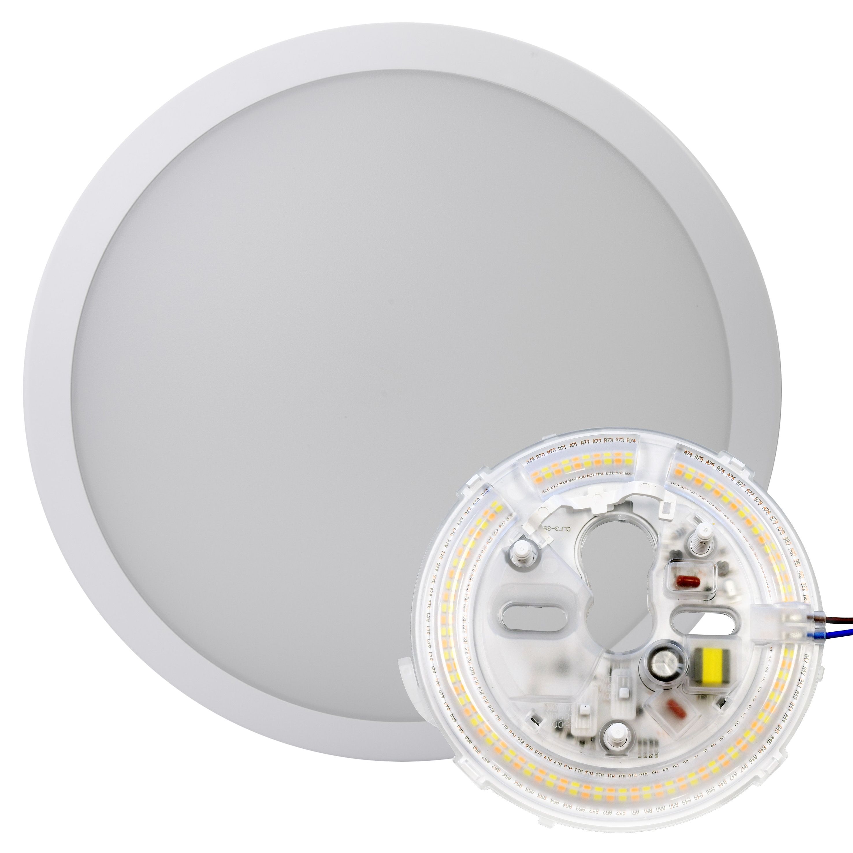Multifunktionale, sehr robuste LED-Decken- und Wandleuchte mit 9fach einstellbarem und wechselbarem LED-Modul. Dreifach einstellbare Lichtfarbe 3000K/4000K/6500K. Leuchtenlichtstrom dreifach einstellbar (1200lm/1800lm/2400lm). Höchste Schutzart gegen Staub- und Strahlwasser. Höchste Schutzart gegen Vandalismus. 50.000 Std. Lebensdauer (L80/B10). 10 Jahre Nachkaufgarantie auf das LED-Modul. Die MEGAMAN XChange-Serie ist ein plattformübergreifendes Leuchtendesign, das die schnelle und werkzeuglose Reparatur durch Austausch von Lichtquelle und Vorschaltgerät ermöglicht. Aktuell gibt es XChange-Modelle in den MEGAMAN Performa-Leuchtenserien FONDA und RENZO. Weißes Gehäuse aus schlagfestem Kunststoff.