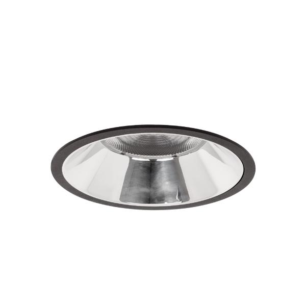 LED-Einbaudownlight, schaltbar, Reflektor silber, hochglänzend, strukturschwarz, rund. Ausgeführt in kompakter Bauform für werkzeuglose Schnellmontage zum Deckeneinbau. Ausführung: ohne Fassung, Montageart: Einbaumontage, Montageort: Deckenmontage, Material: Aluminium / Glas / Kunststoff, Schutzart raumseitig: nach DIN EN 60529: IP20, Schutzklasse: (EN 61140) II, Spannung: 230V AC 50Hz, Leistung: 20,5 W, Anzahl der Leuchtmittel / Fassungen: 1 Stück, Lichtstrom: 2.618 lm, Farbtemperatur: 4.000 K, Lichtfarbe: weiß, Abstrahlwinkel: 55°, Verstellbarkeit: nicht verstellbar, Mit Betriebsgerät: Ja, Art der Dimmung: schaltbar.