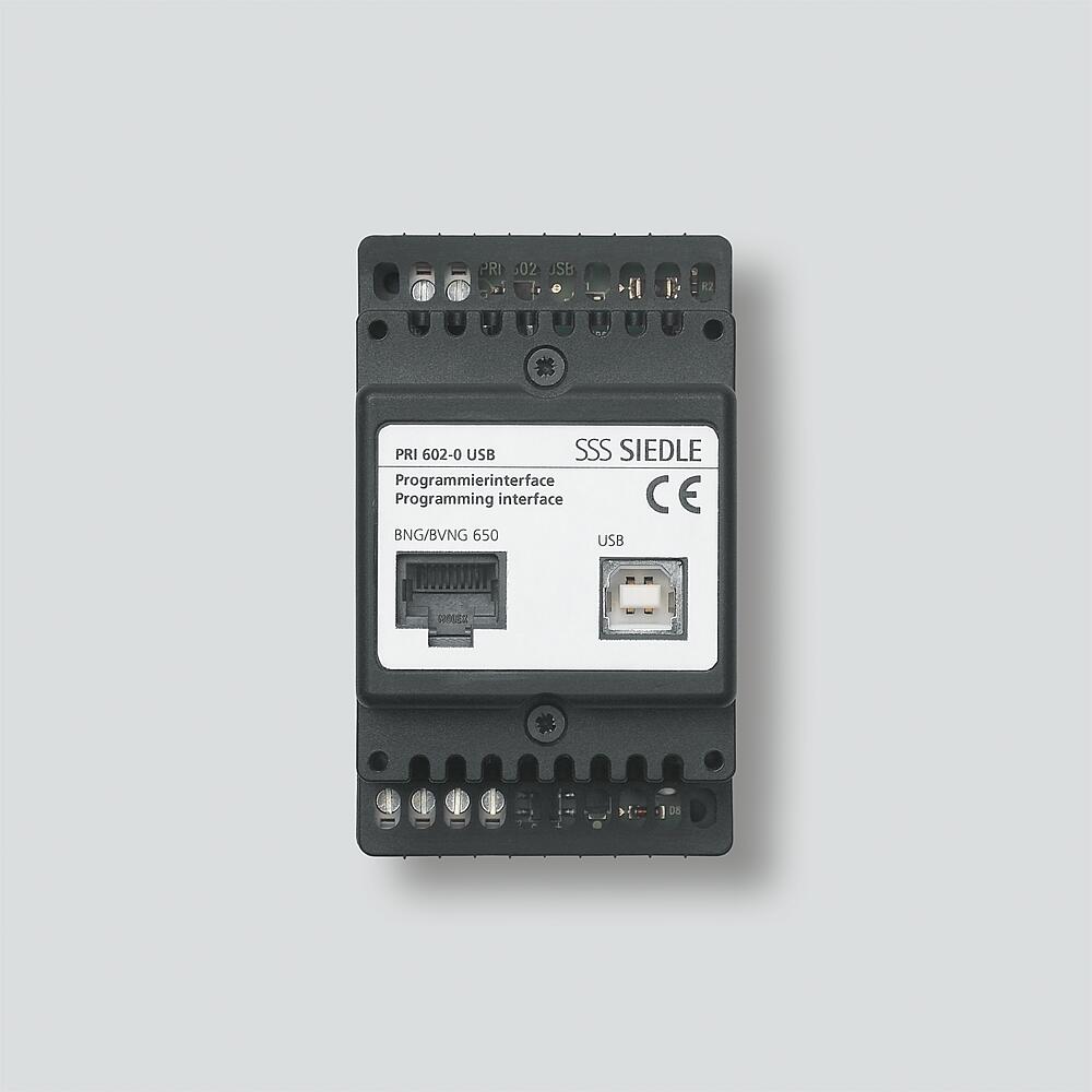 Das Programmierinterface PRI 602- USB im Schalttafelgehäuse verbindet einen Windows-PC über die USB-Schnittstelle mit dem Siedle In-Home-Bus und dem Siedle Vario-Bus.