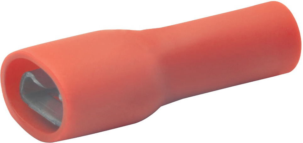 Für fein- und feinstdrähtige Leiter. Isoliert, halogenfrei. Querschnittabhängige Farbkodierung. 4,8x0,8 mm, 0,5-1 mm². Temperaturbeständigkeit bis 70° C. Verzinnt. Werkstoff CuZn (Messing). Isolierhülse: PVC.