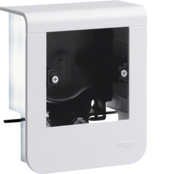 Geräteträger universal design für UP-Geräte mit Rahmen SL 20x55mm verkehrsweiß.Geräteträger zum Elektro-Installationskanal-System Sockelleistenkanal nach DIN EN 50085-1 als Geräteeinbaukanal. Leer Geräteträger zum Aufrasten auf das Sockelleistenkanal-Unterteil bestehend aus Geräteträger-Unterteil mit Arretierschraube zum Einbau von passenden UP-Schalterprogrammen mit Design-Rahmen und Geräteträger-Oberteil. Hinweis: Geräteträgerschürze universal Design als Abdeckung des Kanal-Unterteils unterhalb des Geräteträgers zum Aufrasten auf den Geräteträger ist nicht enthalten.