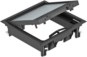 Geräteeinsatz mit Rastschieber für bis zu 6 Modul 45-Einzelgeräte in 2 Universalträger UT3, Einsatz in Kanalsystemen und Systemböden im Innenbereich. Bodenbelagaussparung im Klappdeckel voreingestellt auf 5 mm, bei Bedarf auch einstellbar auf 3, 8 oder 10 mm.
