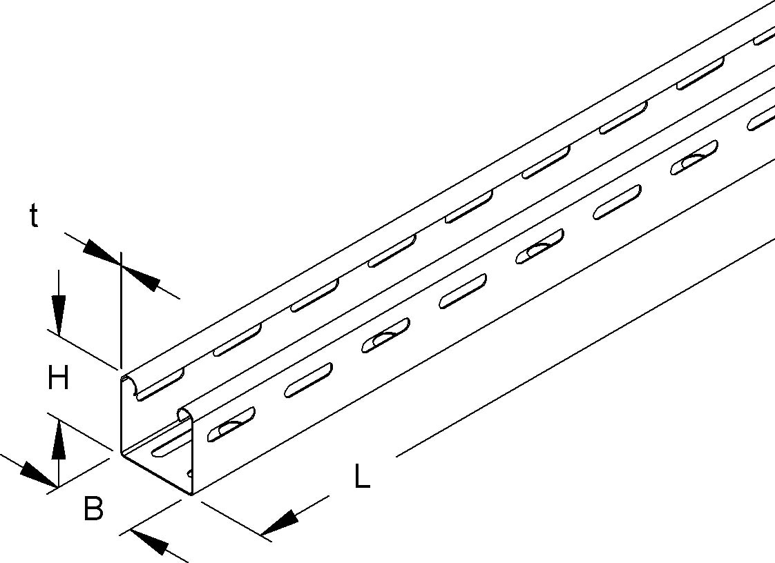 Mini-Kabelrinne, nach DIN EN IEC 61537, C-förmig, mit durchgängier Boden- und Seitenperforation und durchlaufender Mittellochung im Boden für zusätzliche Befestigungen, einschließlich einstückigem U-förmigen Stoßstellenverbinder RV 35... und anteilmäßigem Befestigungszubehör. Abmessungen (ca. Maße) H x B : 35 x 50 mm Materialstärke : 0,75 mm Mittellochung : Ø 15 mm mittiger Lochabstand : 107 mm Lieferlänge : 3000 mm Nutzbarer Querschnitt : 1550 mm² Werkstoff : Stahl, bandverzinkt nach DIN EN 10346