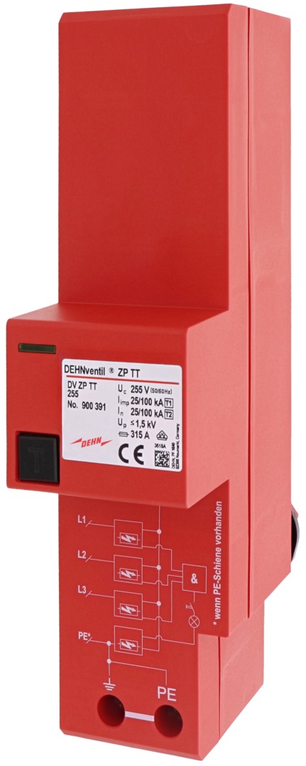 Mehrpoliger Kombiableiter DEHNventil ZP, Typ 1 + Typ 2 nach EN 61643-11 auf Funkenstreckenbasis. Werkzeugfrei direkt auf ein 40mm Sammelschienensystem im Zählerplatzraum aufrastbar. Höchste Anlagenverfügbarkeit durch RADAX-Flow-Folgestrombegrenzung. Ermöglicht Endgeräteschutz. Zum Schutz von Niederspannungs-Verbraucheranlagen vor Überspannungen, auch bei direkten Blitzeinschlägen. Einsetzbar nach dem Blitz-Schutzzonen-Konzept an den Schnittstellen 0A 2.