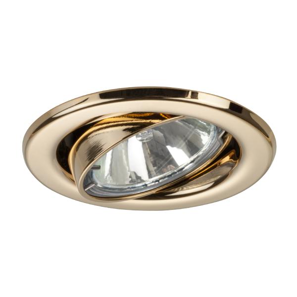 Einbaustrahler, GU10, gold glänzend, rund. Ausgeführt in kompakter Bauform für werkzeuglose Schnellmontage zum Deckeneinbau. Inkl. Bügel mit GU10-Fassung zur normgerechten Zugentlastung. Ausführung: GU10, Montageart: Einbaumontage, Montageort: Deckenmontage, Material: Stahl / Messing, Schutzart raumseitig: nach DIN EN 60529: IP20, Schutzklasse: (EN 61140) II, Spannung: 230V AC 50Hz, Leistung: 10 W, Anzahl der Leuchtmittel / Fassungen: 1 Stück, Verstellbarkeit: schwenkbar, ohne Betriebsgerät, Art der Dimmung: sonstige.