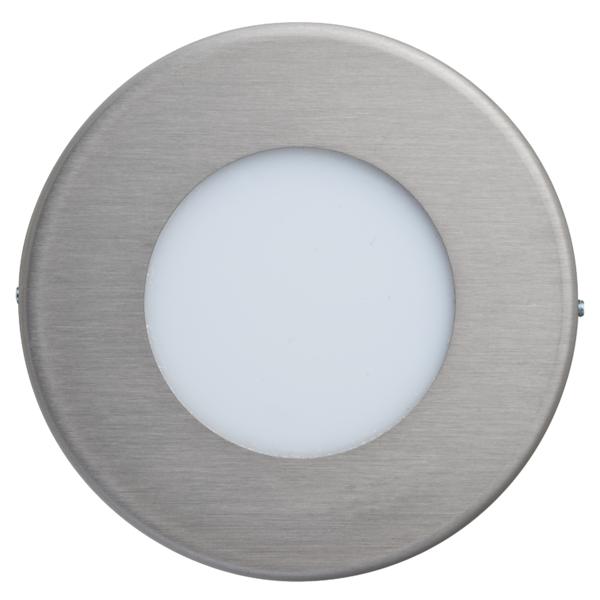 LED-Wandeinbauleuchtenset, schaltbar, edelstahl matt, rund. Einbaumontage, Wandmontage Set inkl. Konverter zum Anschluss an 230 V-Netzspannung, schaltbar, und Hohlwand-Montagedose Ø 68 mm / Einbautiefe: 65 mm Ausführung: ohne Fassung, Montageart: Einbaumontage, Montageort: Wandmontage, Material: Edelstahl / Acryl / Kunststoff, Schutzart raumseitig: nach DIN EN 60529: IP20, Schutzklasse: (EN 61140) I, Spannung: 230V AC 50Hz, Leistung: 1,2 W, Anzahl der Leuchtmittel / Fassungen: 1 Stück, Lichtstrom: 40 lm, Farbtemperatur: 3.000 K, Verstellbarkeit: nicht verstellbar, Mit Betriebsgerät: Ja, Dimmbar: Nein, Art der Dimmung: schaltbar.