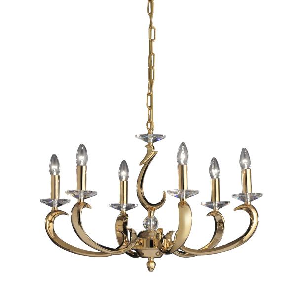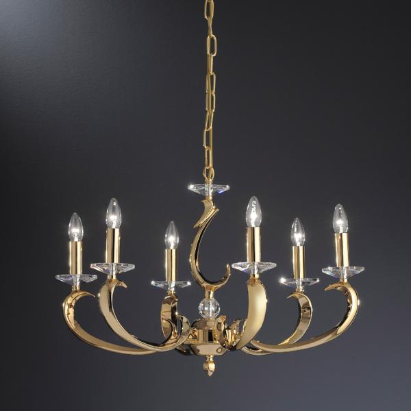 Pendelleuchte glänzend, mit Kristallen, gold glänzend, sonstige. Ausführung in kompakter Bauform für die harmonische Implementierung in stimmige, architektonische Raumkonzepte. Anbau-Pendelleuchte, mit Kristallen. Ausführung: E14, Montageart: Anbaumontage, Montageort: Deckenmontage, Material: sonstige, Schutzart raumseitig: nach DIN EN 60529: IP20, Schutzklasse: (EN 61140) I, Spannung: 230V AC 50Hz, Leistung: 40 W, Anzahl der Leuchtmittel / Fassungen: 6 Stück, ohne Betriebsgerät, Art der Dimmung: sonstige.