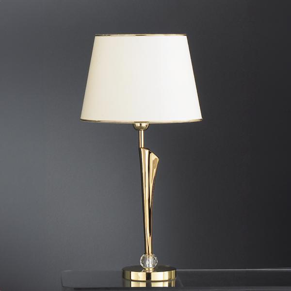 Tischleuchte gold glänzend, mit Schirm Moiré Jaquard beige, gold glänzend, rund. Ausführung in kompakter Bauform für die harmonische Implementierung in stimmige, architektonische Raumkonzepte. Tischleuchte, Schirm: Moiré Jaquard beige. Ausführung: E27, Montageart: Anbaumontage, Montageort: Tischmontage, Material: Messingguss / Kristall / Moiré Jaquard, Schutzart raumseitig: nach DIN EN 60529: IP20, Schutzklasse: (EN 61140) I, Spannung: 230V AC 50Hz, Leistung: 60 W, Anzahl der Leuchtmittel / Fassungen: 1 Stück, ohne Betriebsgerät, Art der Dimmung: sonstige.