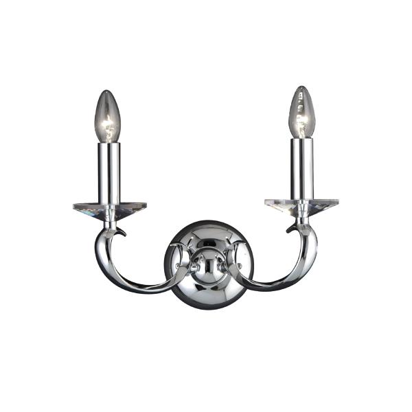 Wandleuchte chrom glänzend, mit Kristallen, chrom glänzend, sonstige. Ausführung in kompakter Bauform für die harmonische Implementierung in stimmige, architektonische Raumkonzepte. Wandanbauleuchte, mit Kristallen. Ausführung: E14, Montageart: Anbaumontage, Montageort: Wandmontage, Material: Messingguss / Kristall, Schutzart raumseitig: nach DIN EN 60529: IP20, Schutzklasse: (EN 61140) I, Spannung: 230V AC 50Hz, Leistung: 80 W, Anzahl der Leuchtmittel / Fassungen: 2 Stück, ohne Betriebsgerät, Art der Dimmung: sonstige.- Hersteller-Artikelnummer (MPN)