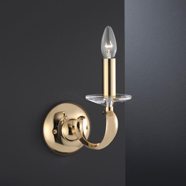 Wandleuchte glänzend, mit Kristall, gold glänzend, sonstige. Ausführung in kompakter Bauform für die harmonische Implementierung in stimmige, architektonische Raumkonzepte. Wandanbauleuchte, mit Kristall. Ausführung: E14, Montageart: Anbaumontage, Montageort: Wandmontage, Material: Messingguss / Kristall, Schutzart raumseitig: nach DIN EN 60529: IP20, Schutzklasse: (EN 61140) I, Spannung: 230V AC 50Hz, Leistung: 40 W, Anzahl der Leuchtmittel / Fassungen: 1 Stück, ohne Betriebsgerät, Art der Dimmung: sonstige.- Hersteller-Artikelnummer (MPN)