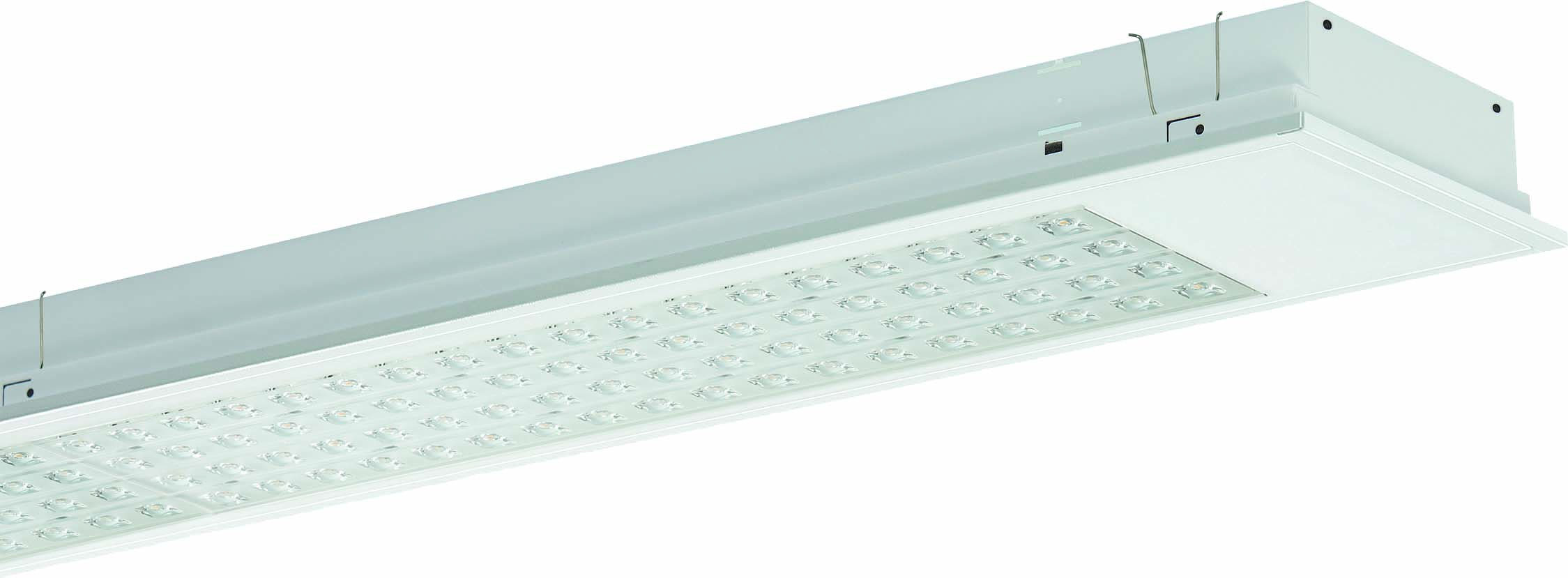 Deckenleuchte der LENSES-Produktfamilie. Lichtlenkung durch Linse, Ausstrahlungscharakteristik symmetrisch, breitstrahlend, Lichtaustritt direkt. Leuchtmittel LED-M eingebaut, Austausch durch Fachkraft möglich. Die Leuchte generiert einen Bemessungslichtstrom von 3570 lm in Lichtfarbe 840, Lichtstrom einstellbar: stufenlos. Die hohe LED-Lebensdauer ermöglicht einen langen Einsatz bei gleichbleibender Beleuchtungsgüte. Hohe Lichtqualität durch eine Farborttoleranz von < 3 SDCM. Gehäuse aus Stahl, verkehrsweiß, ähnlich RAL 9016, Schutzart IP20. Abdeckung aus PMMA klar. Einbau in Decken mit unsichtbaren Tragschienen und unsymmetrischen Deckenplatten, mit entsprechendem Befestigungssatz (Zubehör). Mit elektronischem Betriebsgerät DALI-2. Austausch durch Fachkraft möglich. Nennspannung 220 - 240 V AC/DC 50 - 60 Hz.
