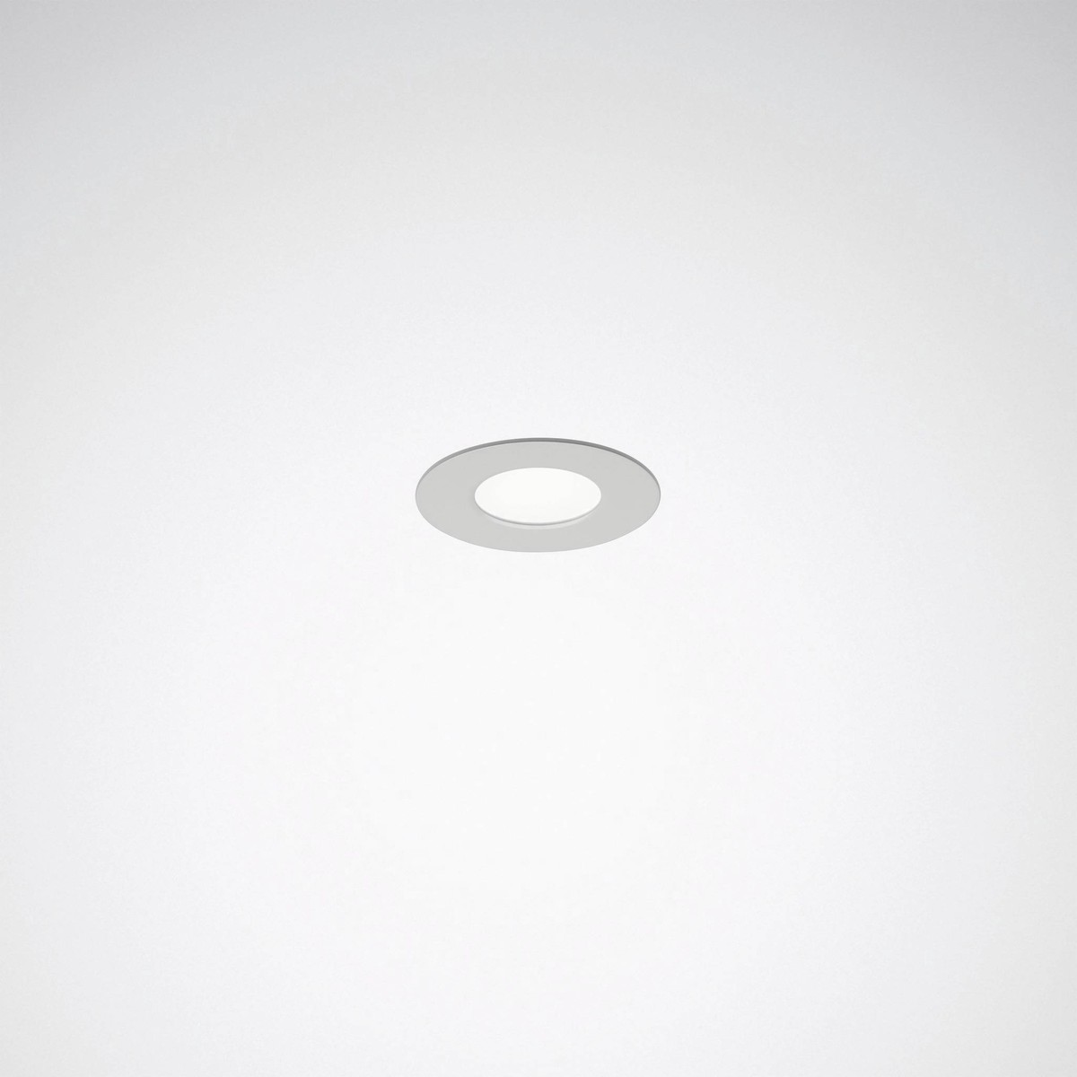 Rundes LED Einbau-Downlight. Werkzeugloser Deckeneinbau durch Schnellmontagefedern. Deckenausschnitt Ø 74 mm, Einbautiefe 80 mm. Mit opaler PMMA-Abdeckscheibe. Mit lambertscher Lichtstärkeverteilung. Leuchtenlichtstrom und Lichtfarbe fest eingestellt. Bemessungslichtstrom 450 lm, Bemessungsleistung 8 W, maximale Leuchten-Lichtausbeute 56 lm/W. Lichtfarbe warmweiß, ähnlichste Farbtemperatur (CCT) 3000 K, allgemeiner Farbwiedergabeindex (CRI) Ra > 80. Farborttoleranz (initial MacAdam) = 4 SDCM. Leuchtenkörper aus Aluminiumdruckguss. Deckenring weiß pulverbeschichtet (ähnlich RAL 9016). Außenmaße Deckenring Ø 93 mm, Leuchtenhöhe 24 mm. Zulässige Umgebungstemperatur (ta): -20 °C - +25 °C. Schutzklasse (EN 61140): II, Schutzart (DIN EN 60529): IP20, Schutzart raumseitig: IP54, Stoßfestigkeitsgrad nach IEC 62262: IK05, Prüftemperatur Glühdrahttest gemäß IEC 60695-2-11: 650 °C. Gewicht: 0,2 kg. Mit externem Betriebsgerät, schaltbar. Das Betriebsgerät ist entsprechend der Ökodesign-Anforderungen (VO (EU) 2019/2020) austauschbar. Das Produkt erfüllt die grundlegenden Anforderungen der anwendbaren EU-Richtlinien und des Produktsicherheitsgesetzes und trägt die CE-Kennzeichnung. Zusätzlich ist die Leuchte durch eine unabhängige Prüfstelle ENEC-zertifiziert.