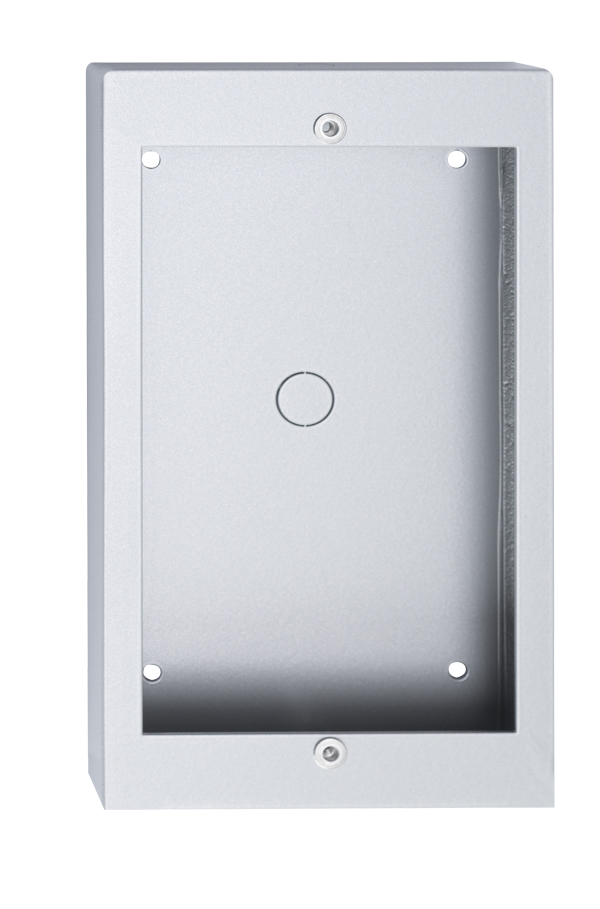 2-moduliger Aufputzkasten aus Aluminium in flacher Ausführung, Aufbauhöhe: 32 mm, 1-reihig (zu komplettieren mit 2-moduligen Abdeckrahmen), Farbe: Allmetal