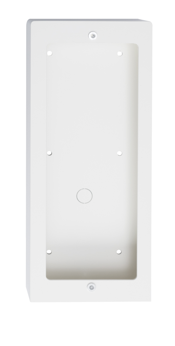 Aufputzkasten aus Aluminium in flacher Ausführung, Aufbauhöhe: 32 mm, 3 Module, 1-reihig (zu komplettieren mit 3-moduligen Abdeckrahmen), Farbe: Allwhite