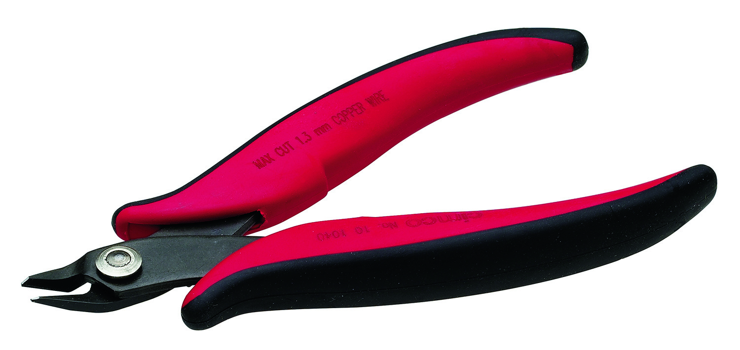 Elektronik-Seitenschneider, verstärkte Ausführung, ohne Schneidwate, Anstellwinkel 21 Grad, Länge 132 mm, für weiche Drähte bis 1,3 mm Durchmesser. Präzisions-Elektronikzange mit durchgestecktem Gelenk, gesenkgeschmiedete Ausführung hochpräzise Ausführung aus Spezialstahl, leicht selbstöffnend durch Doppelblattfedern, hohe Standzeit, Flächen fein geschliffen, mit ergonomischen Zwei-Komponenten Griffhüllen (in ESD oder 1.000 V Ausführung auf Anfrage)