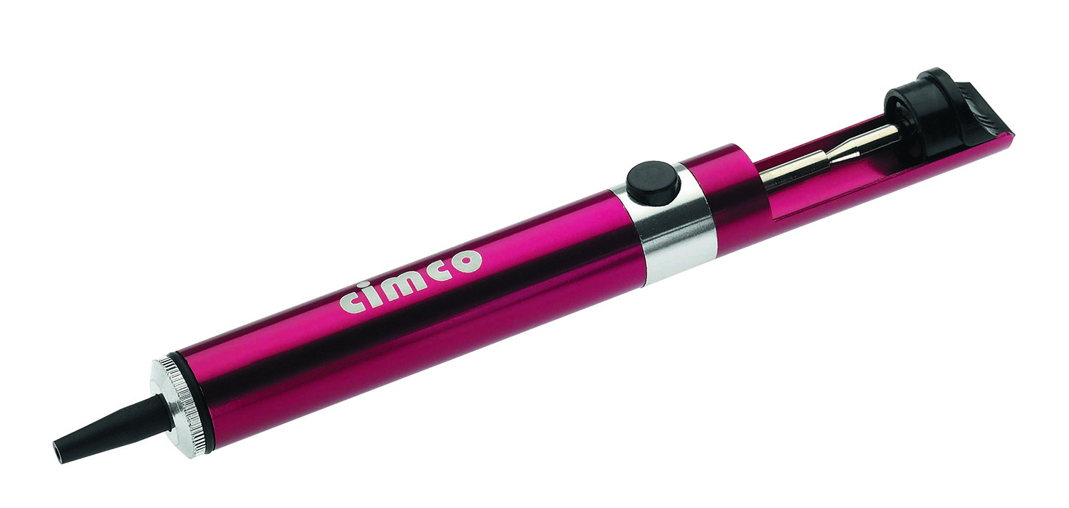 Entlötpumpe ideal geeignet für Reparaturarbeiten an Leiterplatten und Elektronik-Bauteilen, in professioneller Industrie-Qualität mit sehr hoher, gleichbleibender Saugleistung und großer Alumimium-Lotkammer, geringes Gewicht (nur 65g), mit schlanker, antistatischer Entlötspitze aus PTFE. 195 mm